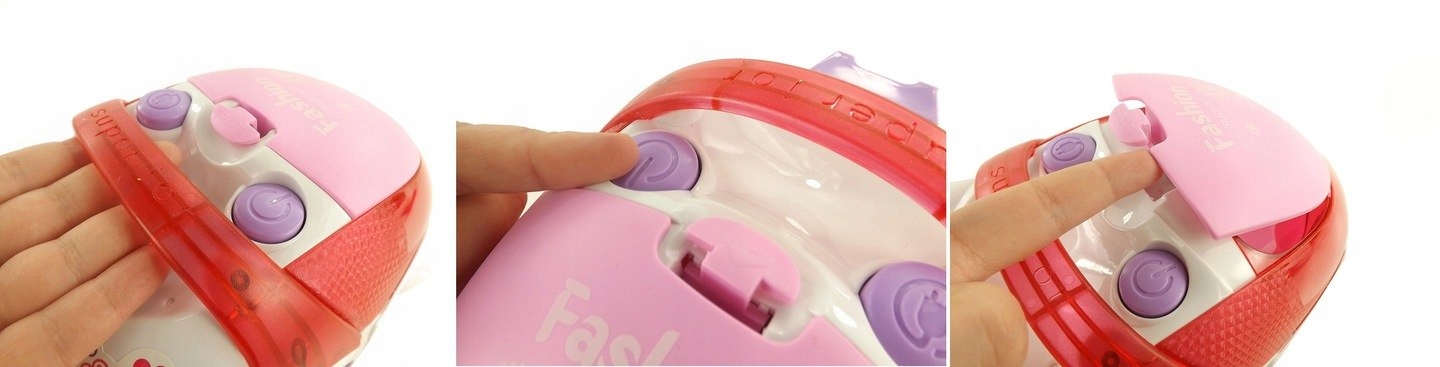 ZABAWKA POSIADA IMITACJE GUZIKA, DZIĘKI KTÓREMU CHOWANY JEST KABEL ODKURZACZA. ODKURZACZ POSIADA POJEMNICZEK NA ŚMIECI, KTÓRY PO NAPEŁNIENIU MOŻNA OPRÓŻNIĆ I ZACZĄĆ ZABAWĘ OD NOWA.