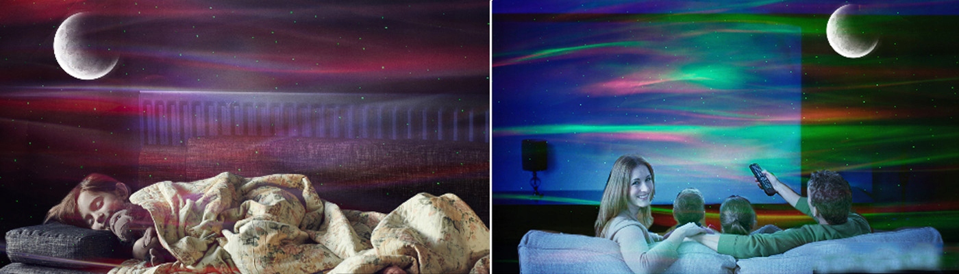 Projektor Aurora Star Night Light może wyświetlać realistyczne rozgwieżdżone nocne niebo i zorzę polarną na suficie. Dzięki zorzy polarnej, księżycowi i gwiazdom współpraca może osiągnąć do 15 trybów projekcji.To jak podróżowanie po biegunie północnym, sięganie i dotykanie zorzy polarnej, fantazji i zabawnego projektora gwiaździstego nieba.