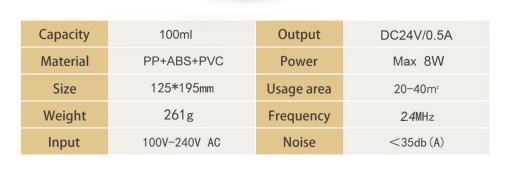 - Ефективність туману: макс. 20 мл/год (приміщення до 40 м2)