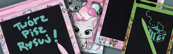 - Można go używać zarówno w domu jak i w podróży, tworzyć, pisać i rysować a następnie jednym przyciskiem usunąć zapis i rozpocząć zabawę od nowa.