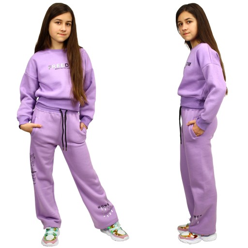 Теплий, бузковий спортивний комплект з написом