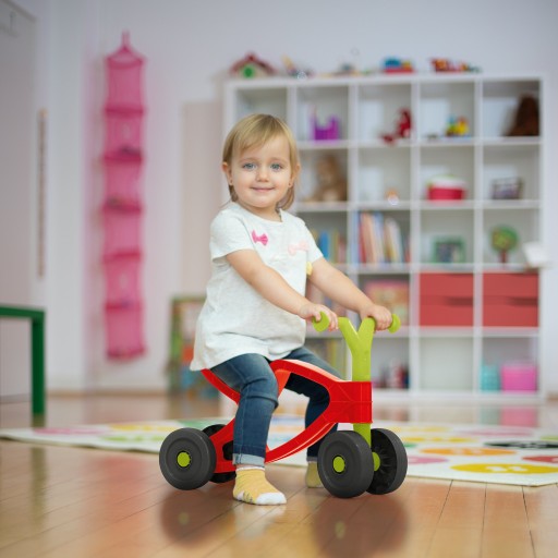 - Низький центр ваги дозволяє безпечно і більш впевнено навчатися першим «крокам» на ride-on