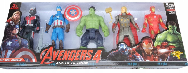AVENGERS 5 FIGUREK + AKCESORIA + DIODA LED