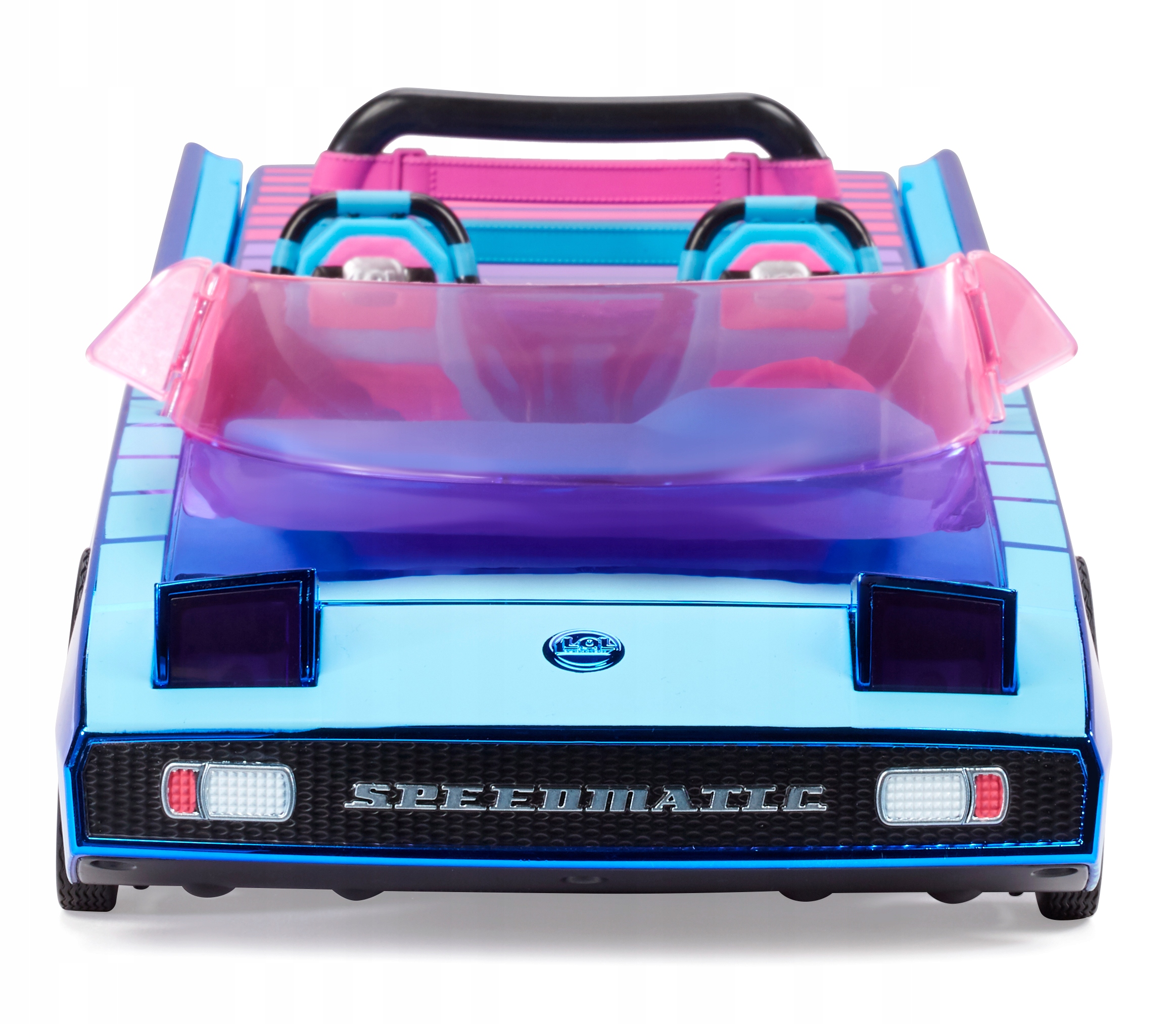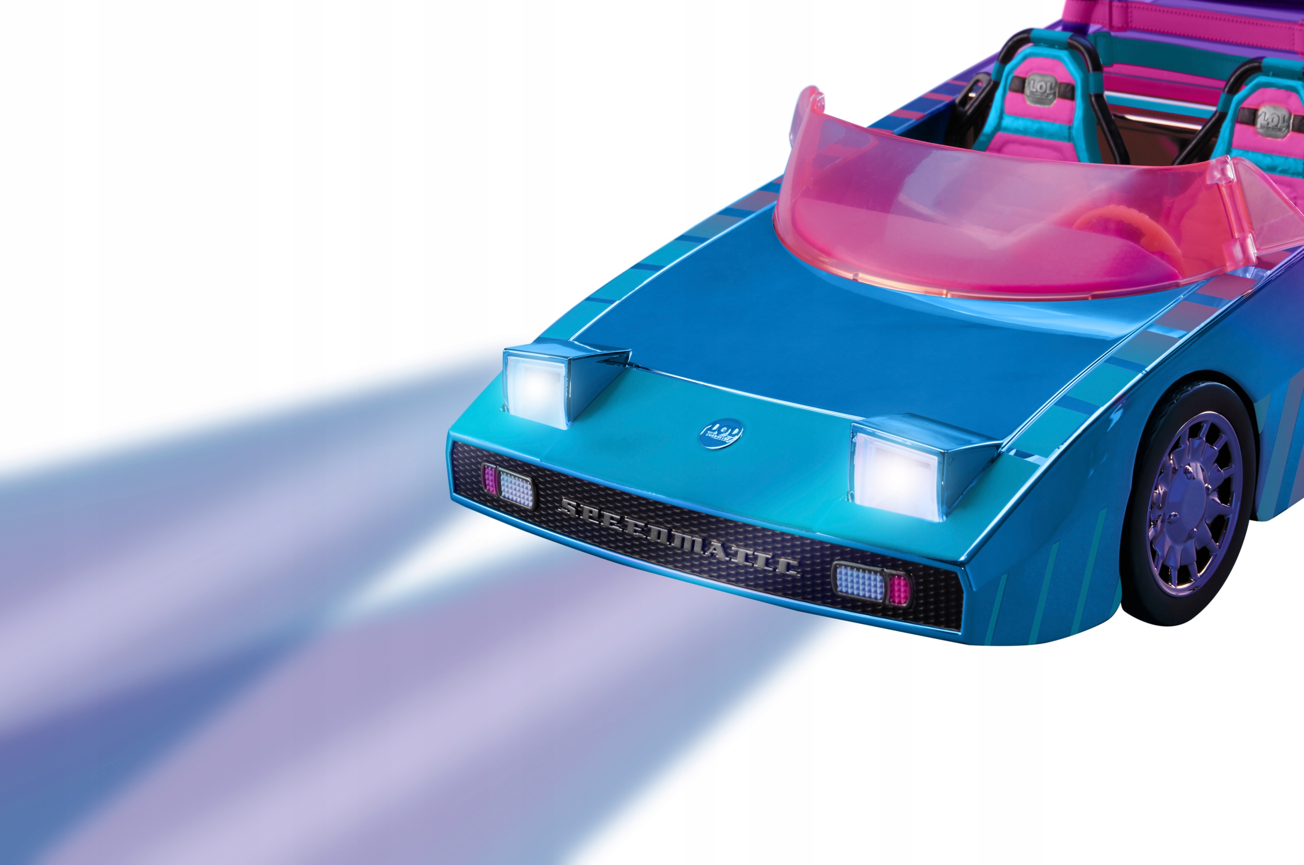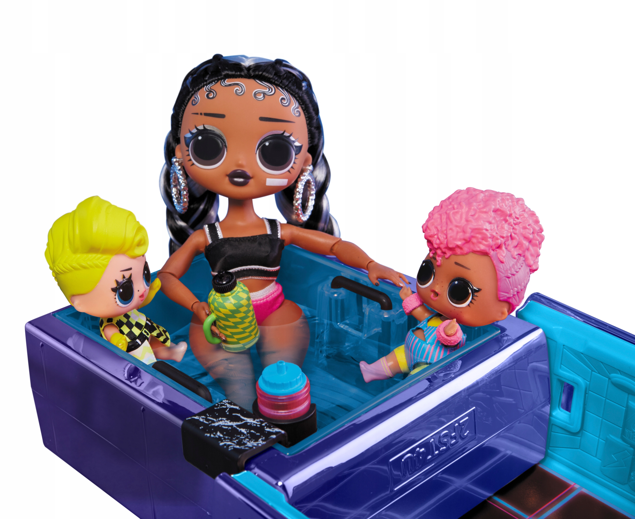 Zdejmij tył samochodu i otwórz go, aby odsłonić basen, który pasuje do lalek LOL Surprise we wszystkich rozmiarach. Wyściółkę basenu można zdjąć, aby napełnić wodą i łatwo wyczyścić. Prawdziwe, działające reflektory podnoszą się i świecą czarnym światłem, ukazując neonowe niespodzianki! Dzięki regulowanym fotelom, pasom bezpieczeństwa, rozkładanym lusterkom, otwieranemu schowkowi na rękawiczki, kluczom, uchwytowi na kubek i nie tylko, Twój B.B.s będzie gotowy na wszystko dzięki LOL Surprise Dance Machine.