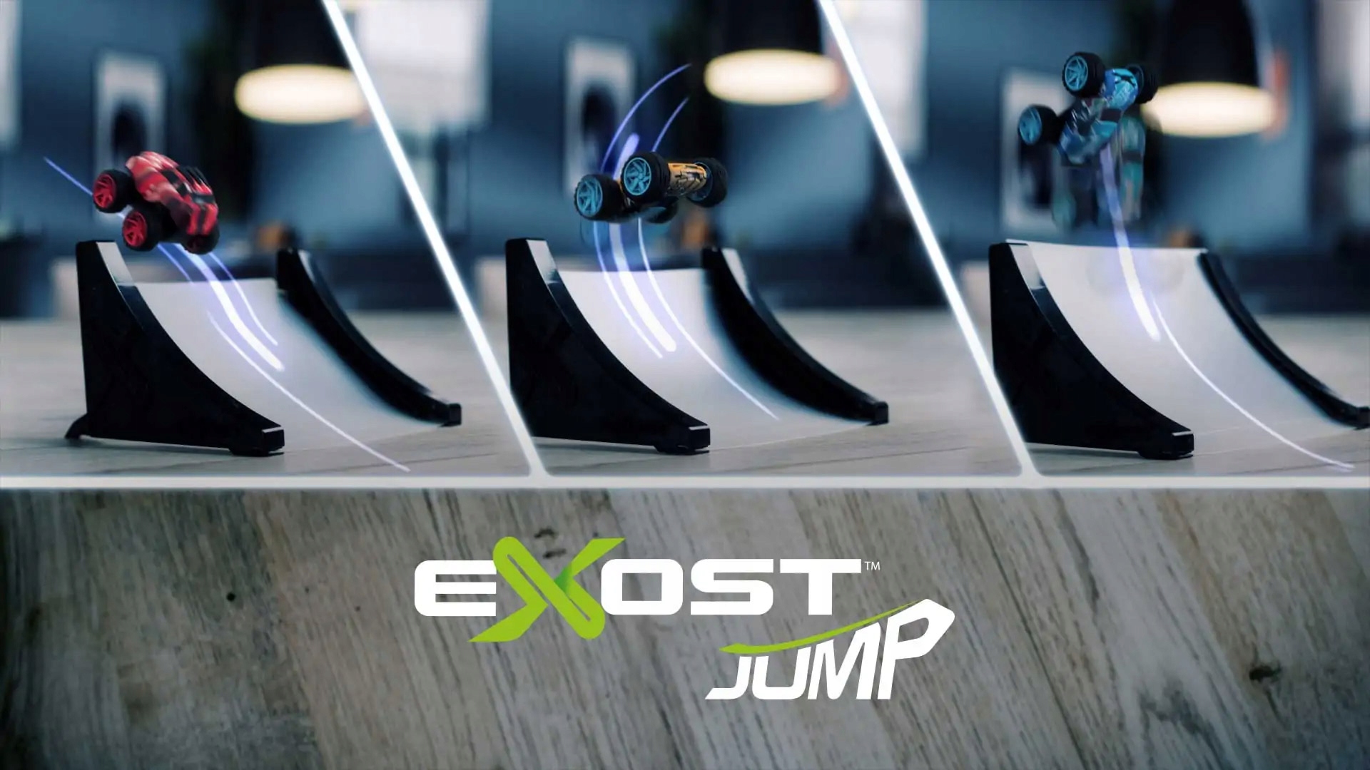 Exost Jump to szybki samochód kaskaderski z napędem ciernym, który nie wymaga baterii. Wystarczy, że energicznie popchniesz samochodzik po podłodze do przodu, a naładujesz moc tego niewielkiego autka. Wyścigówka wystartuje z wielką szybkością i może wykonać różne sztuczki kaskaderskie.