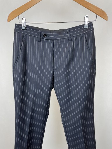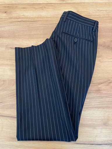 Штани в складку прямого крою, з трохи завуженими штанинами донизу. Застібається на блискавку, гачок і кнопку. Вони мають шлевки для ременя. І спереду, і ззаду є класичні кишені. Штани зроблені надійно, з увагою до деталей. Хороша якість матеріалу неодмінно втілиться в довговічність і комфорт у носінні.