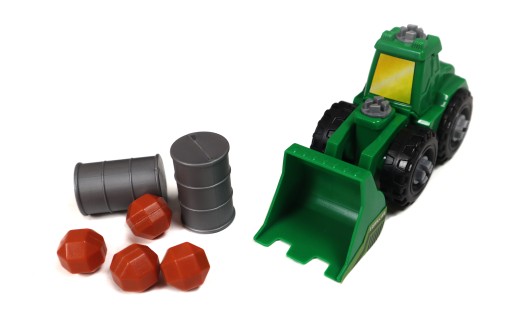 - незвичайним доповненням до майстерні є екскаватор, який можнавільно відкручувати та крутити за допомогою інструментів, що входять у комплект