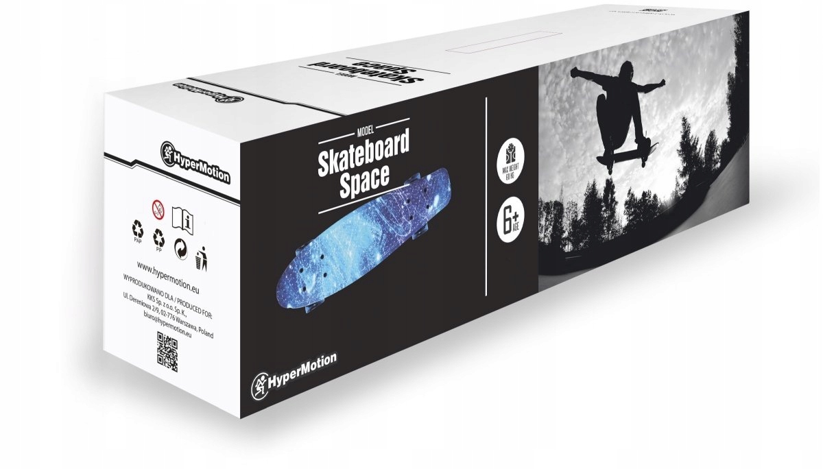 Dlaczego warto wybrać deskorolkę HyperMotion? Ponieważ jest to marka specjalizująca się w sprzęcie do aktywnej zabawy i gwarantuje, że zakupiona deskorolka spełni wszystkie oczekiwania. Jej pierwszą zaletą jest użycie wysokiej jakości nowoczesnych łożysk. Są to bardzo wytrzymałe łożyska ABEC7. Dzięki nim koła obracają się bez oporu, a jazda jest czystą przyjemnością. Unikatowy kształt i materiał sprawiają, że deskorolka jest wygodna w użyciu, opływowa i solidna.