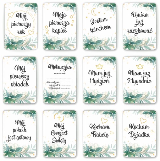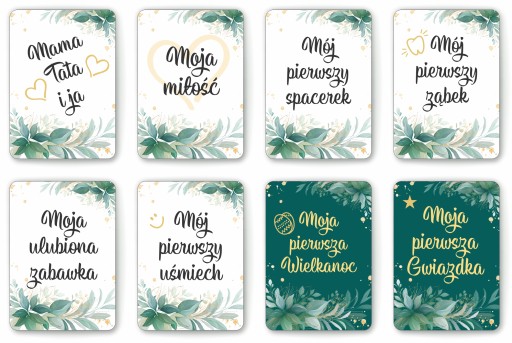 Картки - ідеальна ідея, щоб завершити цей надзвичайний час, яким є перший рік життя дитини. Кожна картка має закруглені кути, щоб у разі контакту з малюком він не зміг ними поранитися. У поєднанні з декількома фотографіями ви створите ідеальний сувенір собі або подарунок своїм близьким, наприклад, бабусі чи дідусеві дитини.