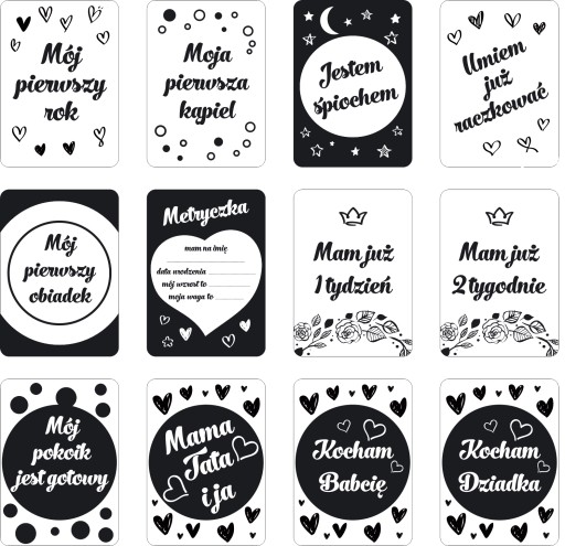 Картки - ідеальна ідея, щоб завершити цей надзвичайний час, яким є перший рік життя дитини. Кожна картка має закруглені кути, щоб у разі контакту з малюком він не зміг ними поранитися. У поєднанні з декількома фотографіями ви створите ідеальний сувенір собі або подарунок своїм близьким, наприклад, бабусі чи дідусеві дитини.