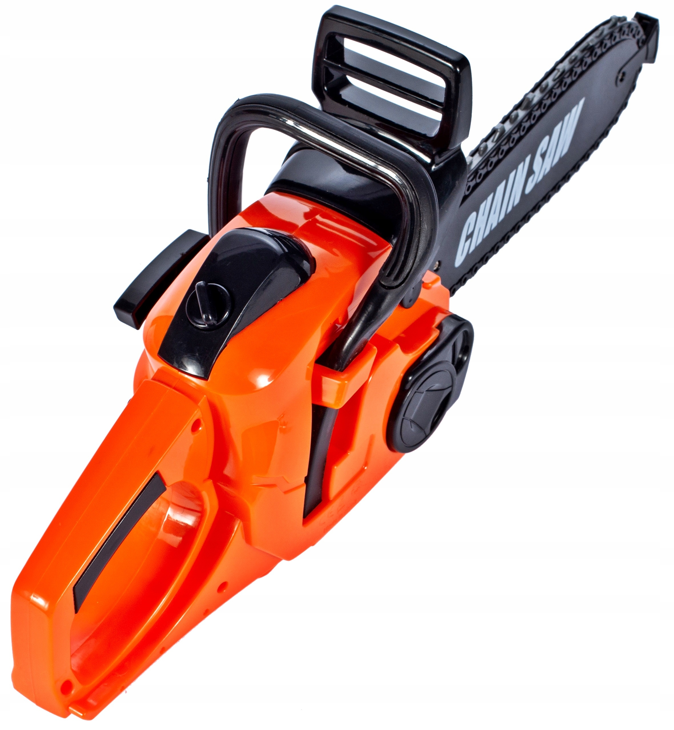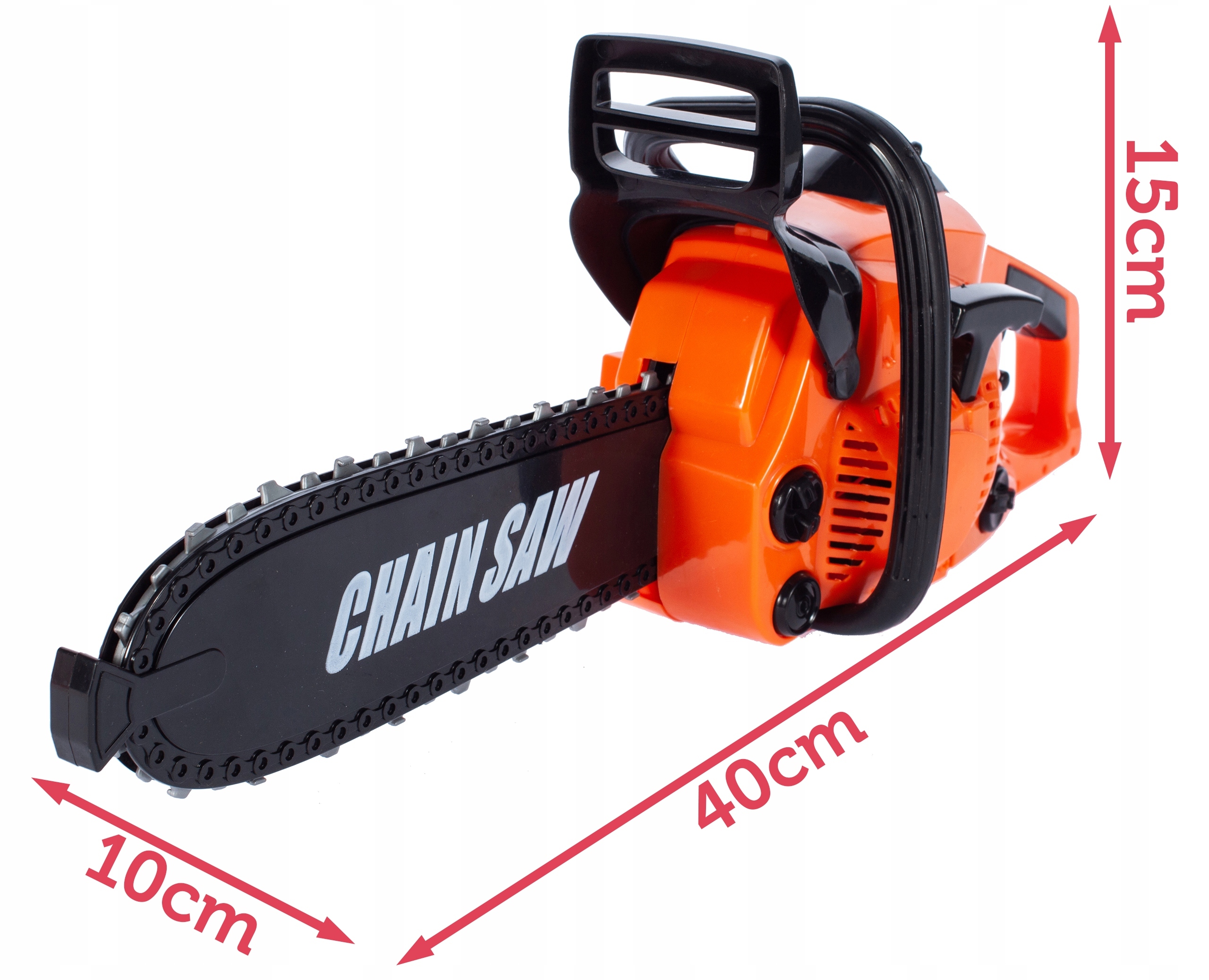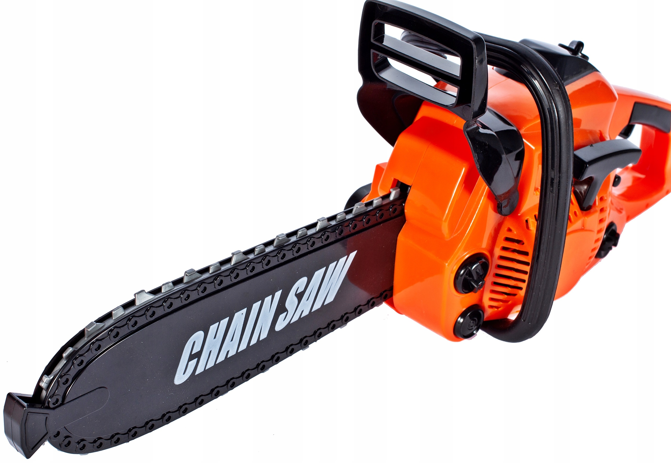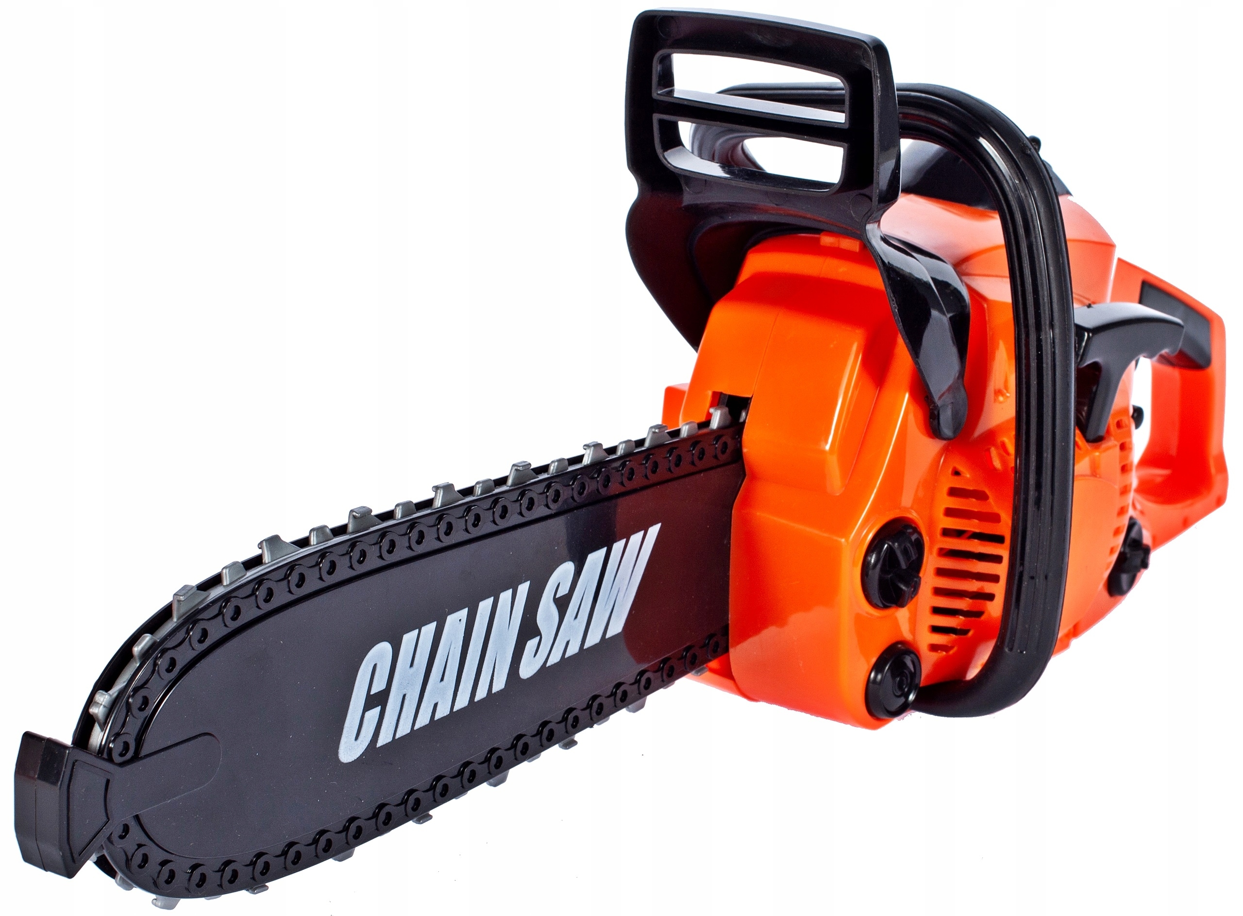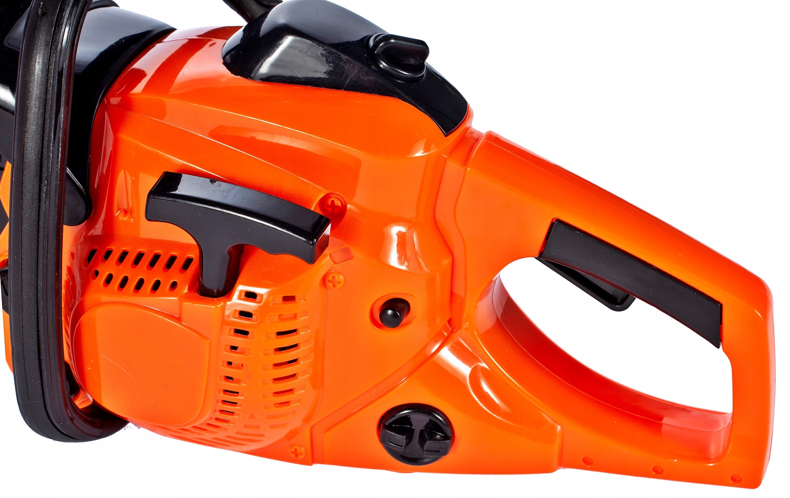 Z boku piły znajduje się czarny przycisk dzięki któremu uruchamiamy piłę. Gdy pociągniemy za rączkę z lewej strony usłyszymy dźwięk odpalającej się prawdziwej piły spalinowej. Podczas wciskania spustu, łańcuch zamontowany na prowadnicy zaczyna się kręcić niczym w prawdziwej pile.