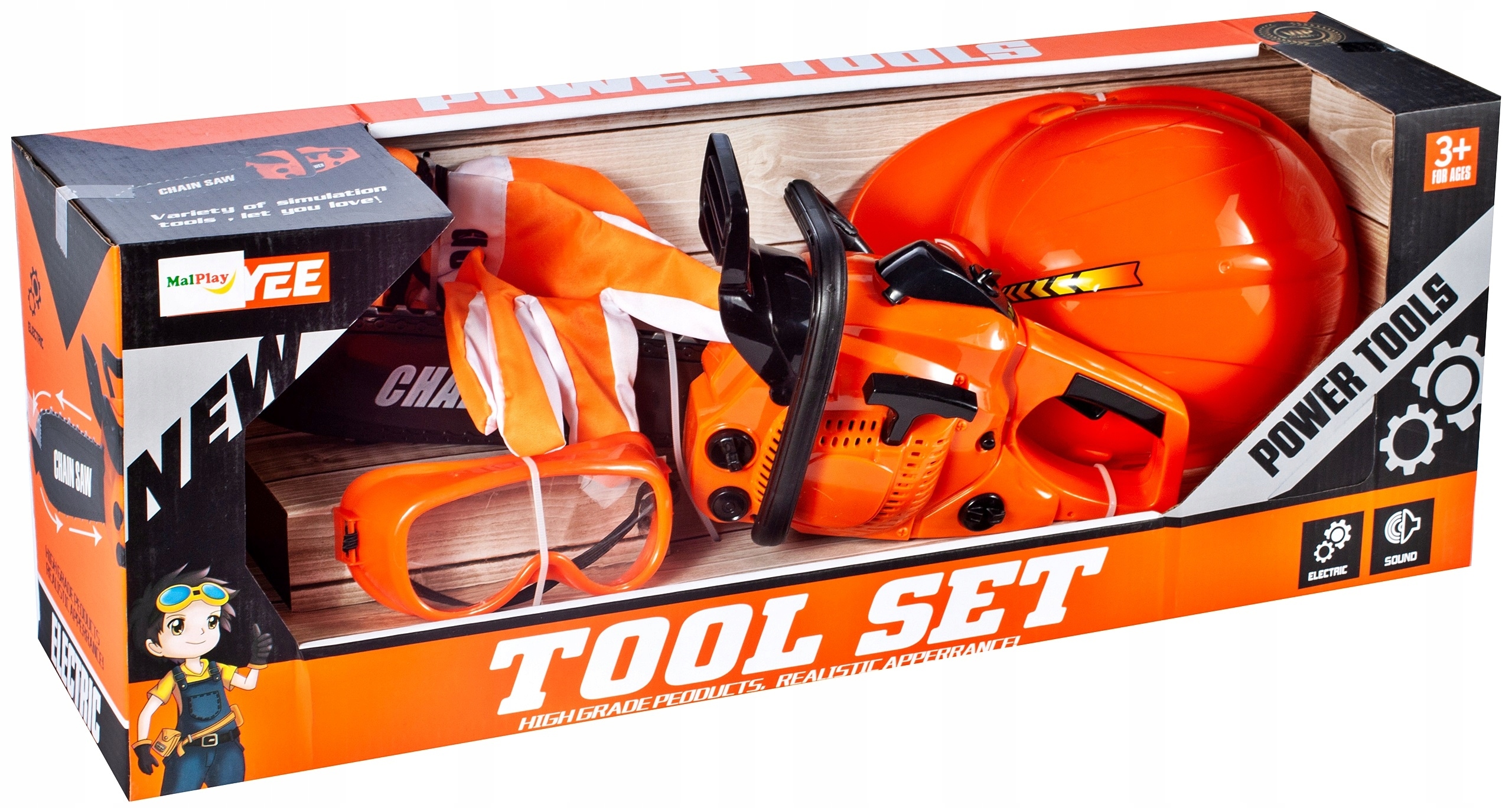 Zestaw Drwala z Piłą, Kaskiem, Rękawicami i Okularami Ochronnymi