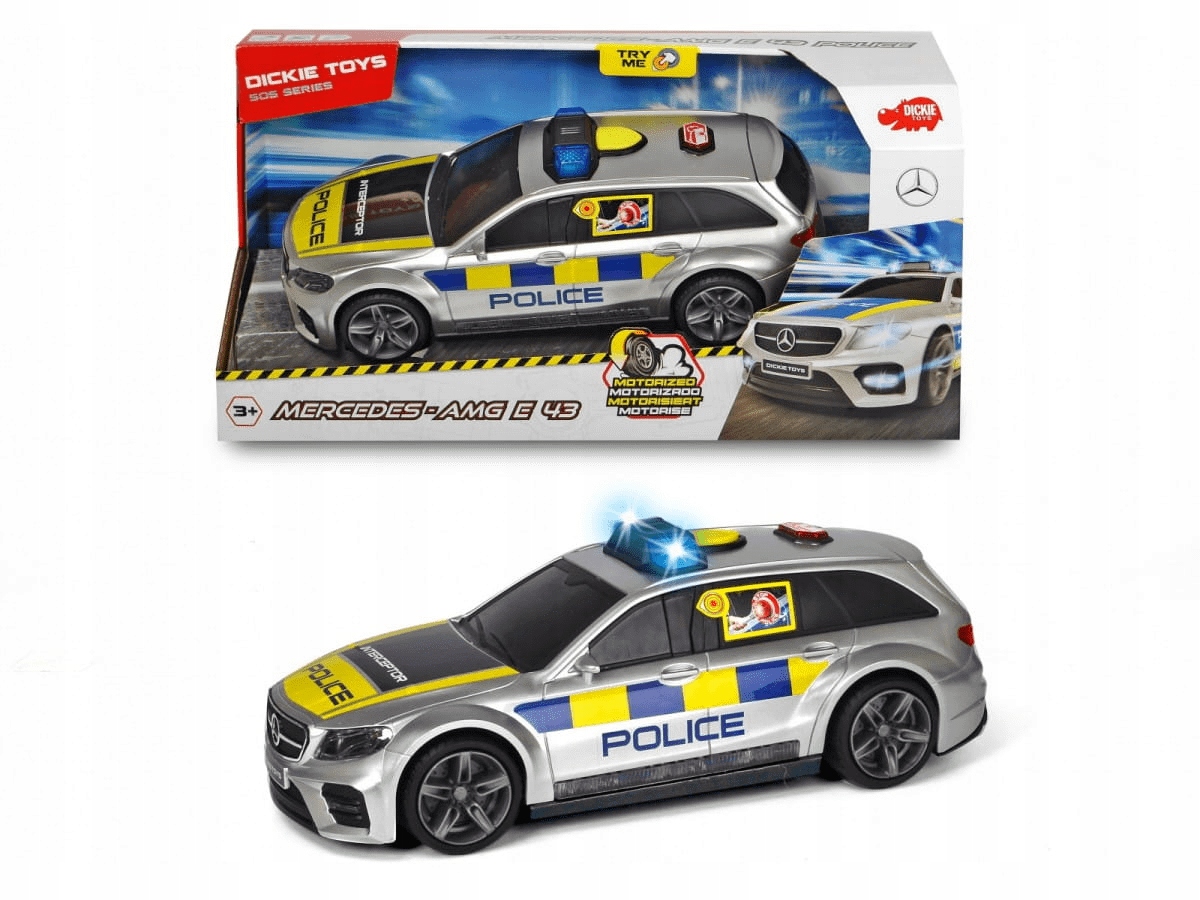 Radiowóz Dickie wzorowany na pojazd na licencji Mercedes, wzorowany na model AMG E43.