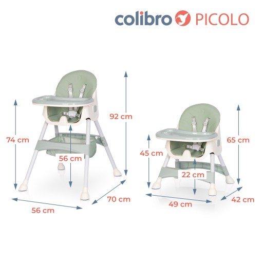 Стільчик для годування PICOLO від COLIBROНезважаючи на свою мінімалістичну форму, це багатофункціональний продукт.ПІКОЛОназивається високим стільчиком4в1тому що ви можете використовувати їх на4 різні способи: