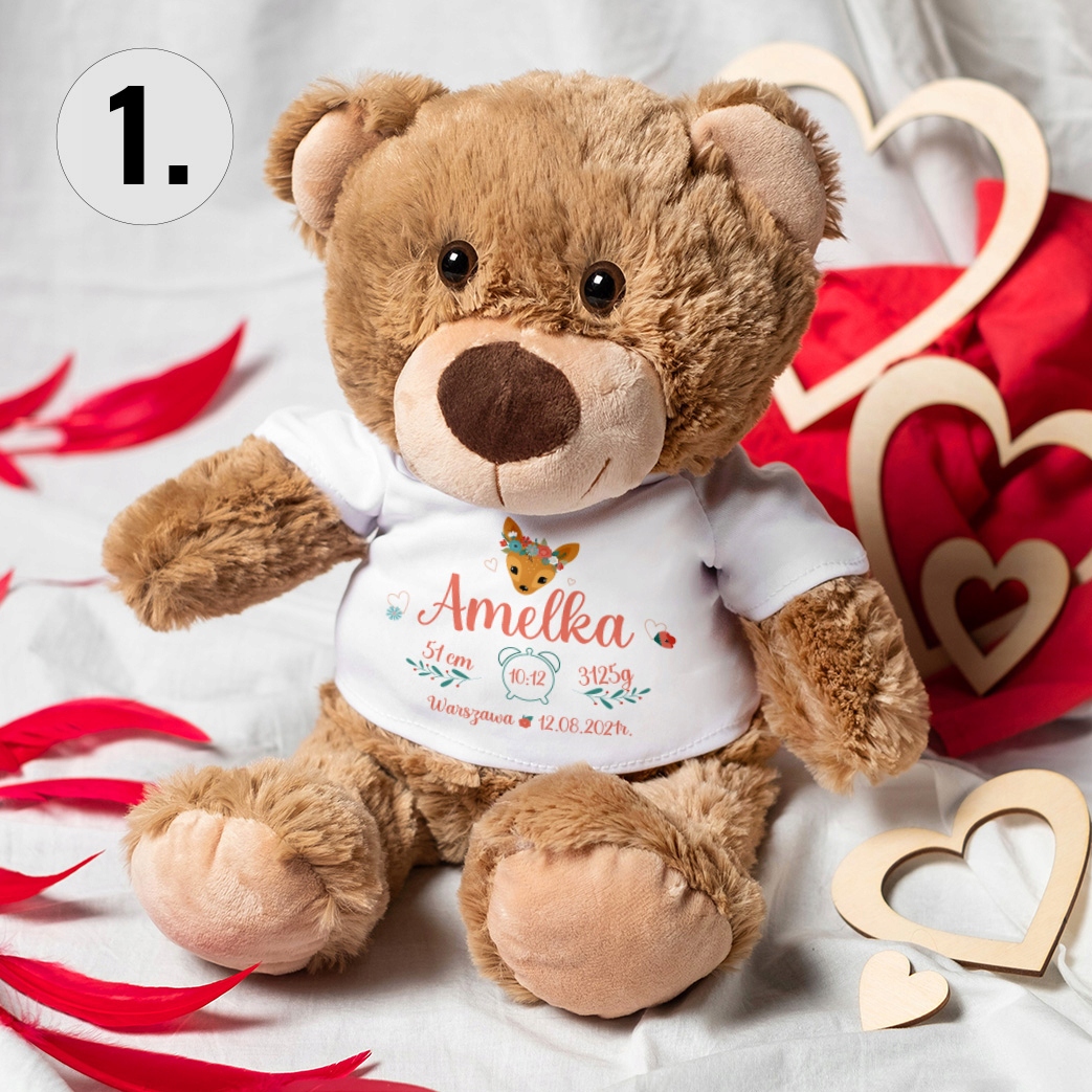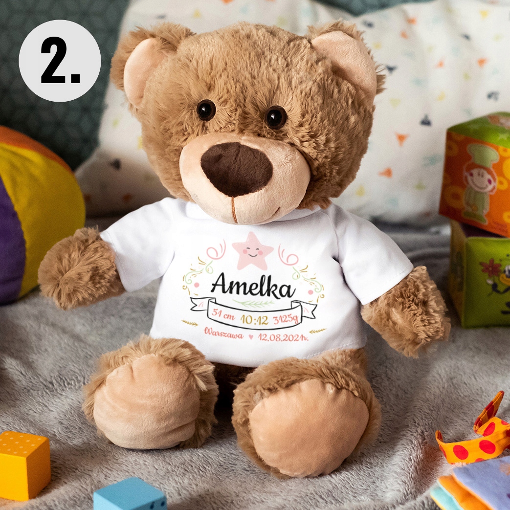 Ten wyjątkowy upominek dla chłopca albo dziewczynki będzie towarzyszem codziennych wyzwań, zabawy oraz spokojnego snu. Miś z imieniem stanie się ulubioną przytulanką każdego obdarowanego dziecka.
