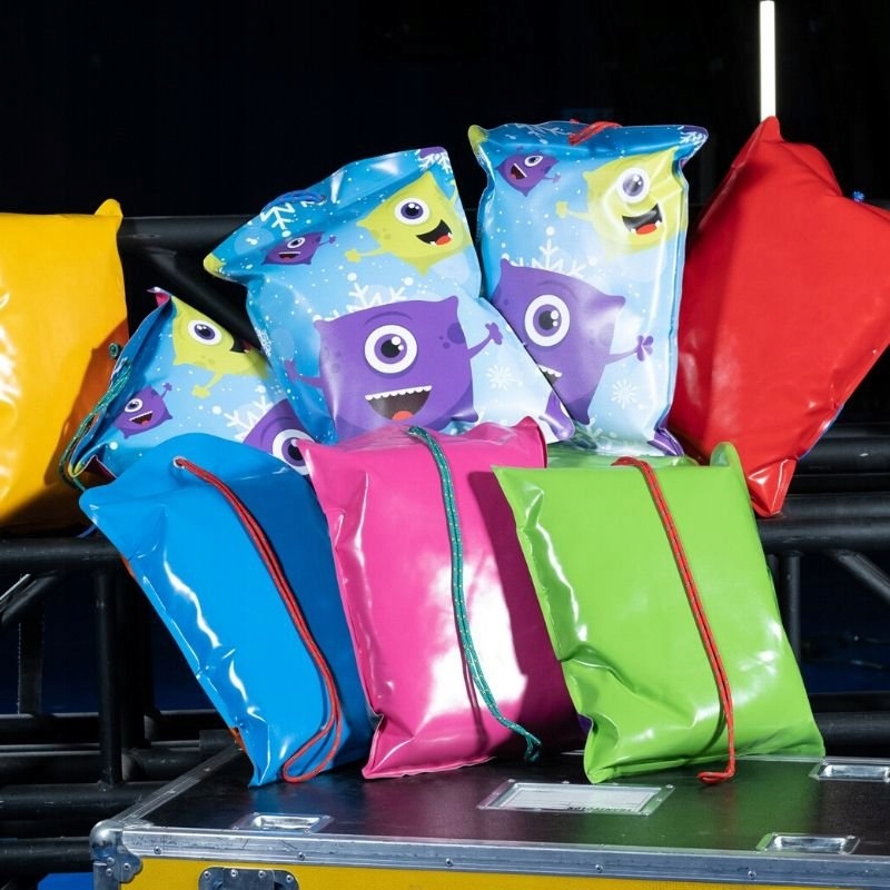 Wnętrze poduszki wykonane jest z materiałów pochodzących z recyklingu. Materiały są miękkie, zapewniają amortyzację podczas zabawy na świeżym powietrzu.