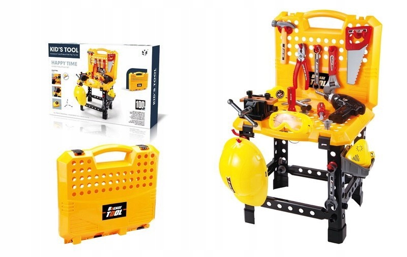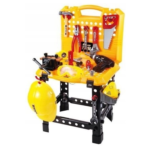 Zestaw narzędzi z warsztatem i walizką na narzędzia to nie lada gratka dla każdego małego miłośnika majsterkowania. W tym zestawie znajduje się 100 elementów. Zabawka przeznaczona jest dla dzieci od 3-go roku życia, zasilanie bateriami typu 2 x AA (wkrętarko-wiertarka) - brak w zestawie.