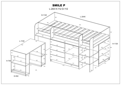 Антресоль Smile дозволяє практично обставити дитячу або підліткову кімнату навіть в невеликих кімнатах. Інноваційний предмет меблів служить місцем для сну, зберігання, ігор і навчання. Оригінальна форма та різноманітність кольорів роблять його чудовою пропозицією, яка викличе посмішку у вашої дитини.