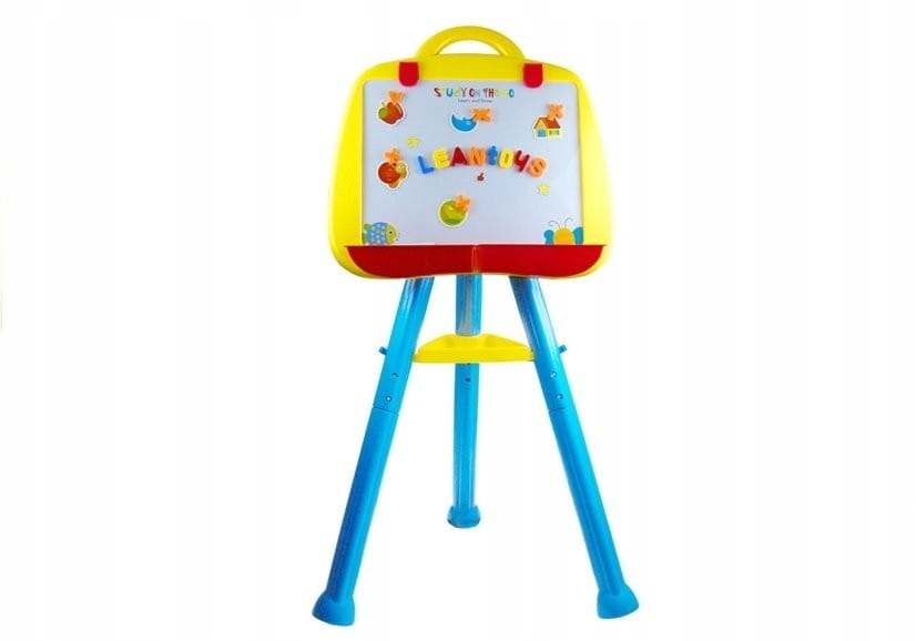 Duża, edukacyjna tablica zachwyci każdego fana prac plastycznych. Powłoka tablicy sprawia, że można pisać na niej flamastrem, a także przyczepiać obrazki, cyferki i literki na magnes. Ponadto tablica posiada klipsy, którymi można przypiąć kartę, by móc używać tablicy jak sztalugi.