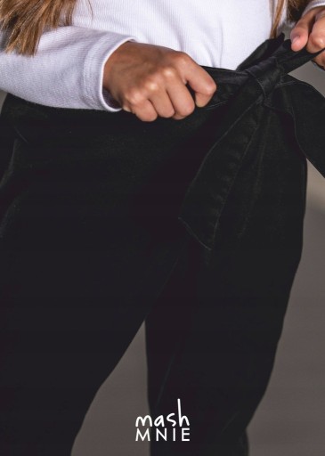 ШТАНИ З ТКАНИНИ COOL MIKKI JEANS, ЧОРНІ. ДОДАТКОВО ЗАВ'ЯЗАНИЙ НА ТАЛІЇ ДЕКОРАТИВНИМ БАНТИКОМ. ДВІ КИШЕНІ СПЕРЕДУ ТА ЗАДНІЙ. POSU ДЛЯ ЕЛЕГАНТНОГО ТА СПОРТИВНОГО СТИЛЮ