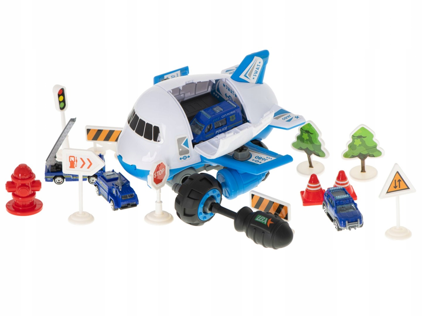 Samolot, na swoim pokładzie może przetransportować dołączone do zestawu auta.