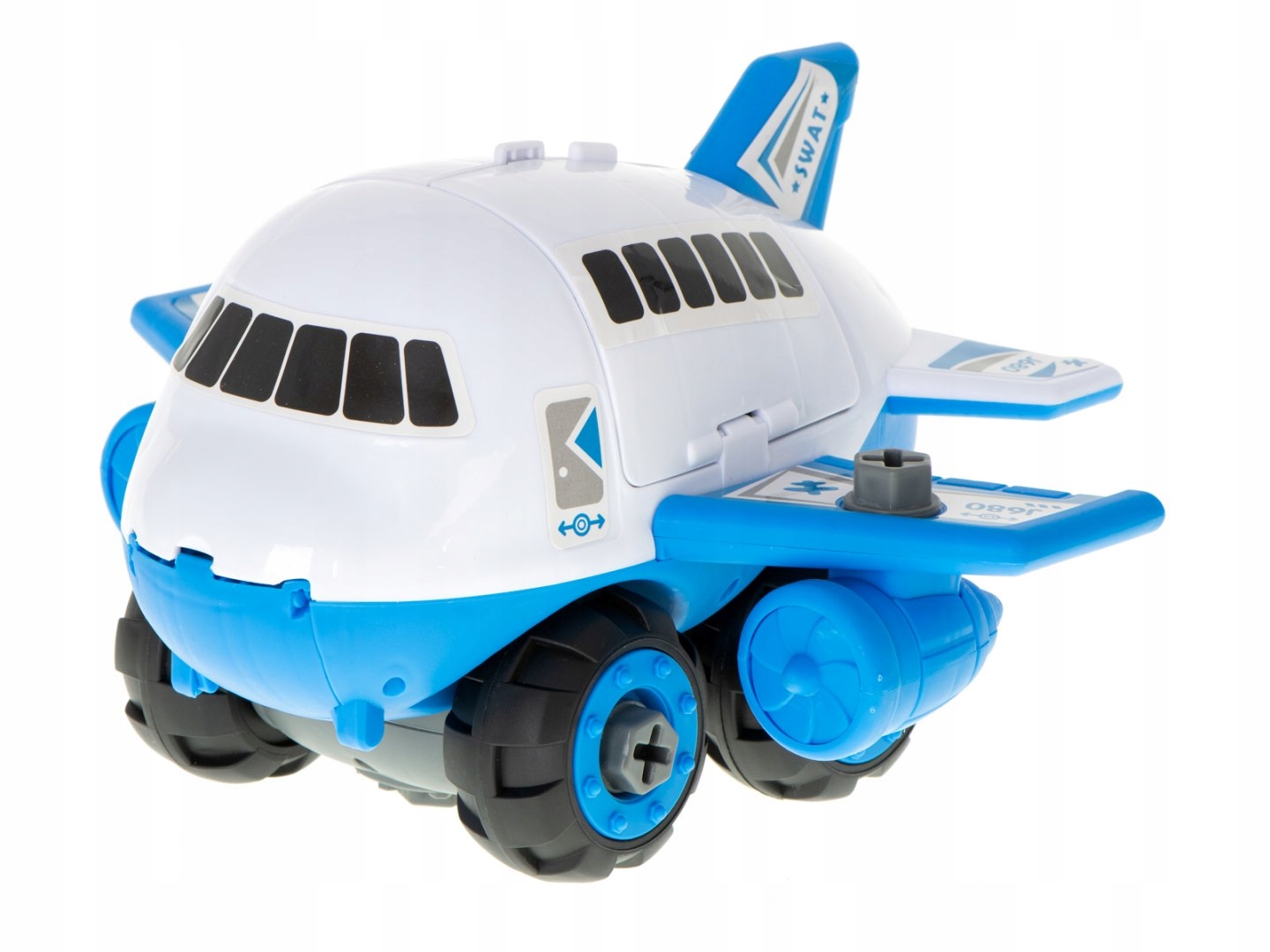 Zabawę tym zestawem należy rozpocząć od skręcenia kół, kadłub samolotu oraz silników samolotu dołączonym śrubokrętem. Później dołączone naklejki należy umieścić w odpowiednich miejscach i już można rozpocząć zabawę.