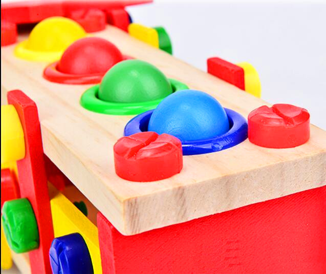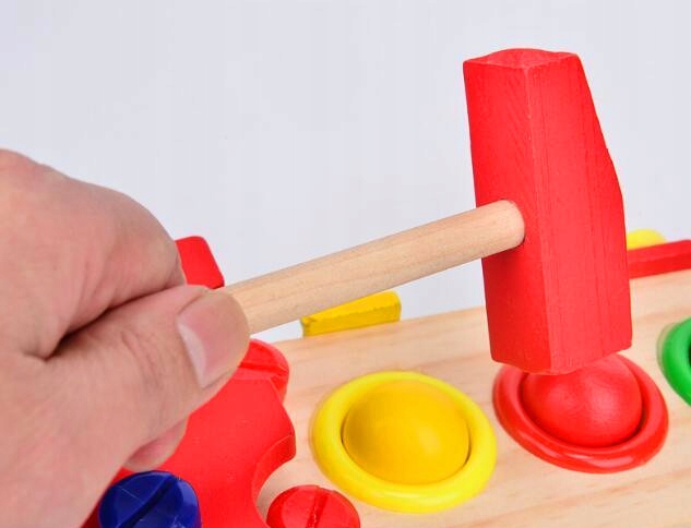 Dołączony młotek do wbijania kuleczek dzięki czemu zabawka pełni funkcję również przebijaka