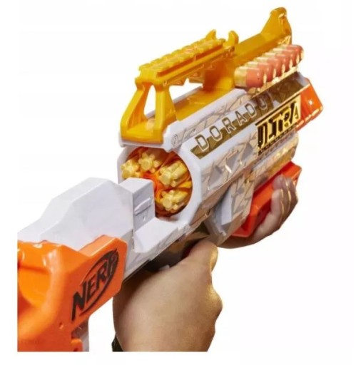 - АВТОМАТИЧНИЙ ЗАПУСК NERF ULTRA DORADO REAR QUICK RELOAD: Барабан із 6 дротиками відкритий ззаду (лицьовою стороною до вас, коли тримаєте пускову установку) для швидкого перезаряджання. Працює лише з дротиками Nerf Ultra