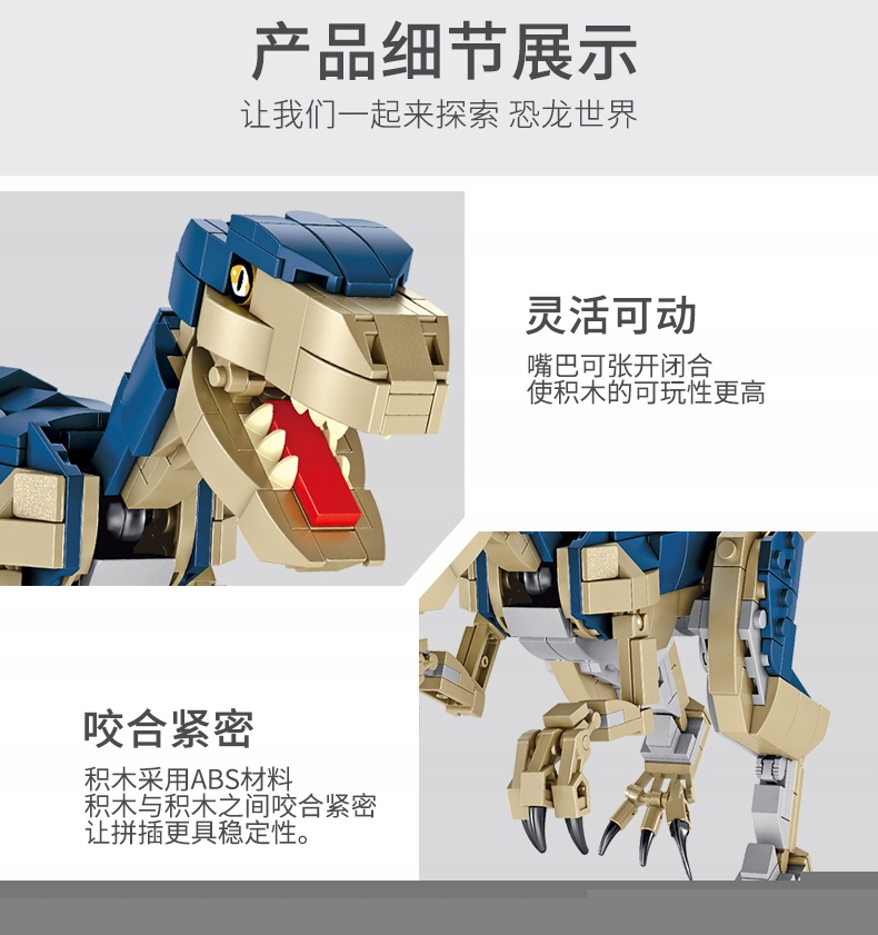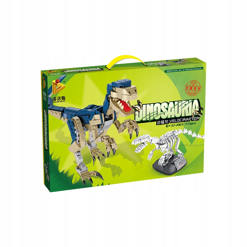 Zestaw DINOZAUR VELOCIRAPTOR PANLOS składa się z 774 elementów w postaci klocków i figurek, jest on kompatybilny z innymi markami klocków (LEGO; COBI; SLUBAN; KAZI; BLOCKI; LEUI i wiele innych)