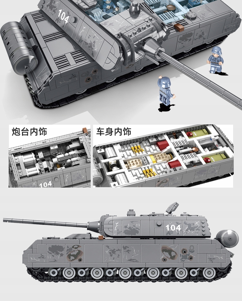 Zestaw CZOŁG CIĘŻKI PANZER VIII MAUS składa się z 2127 elementów w postaci klocków i figurkI, jest on kompatybilny z innymi markami klocków (LEGO; COBI; KAZI; BLOCKI; LEUI i wiele innych)