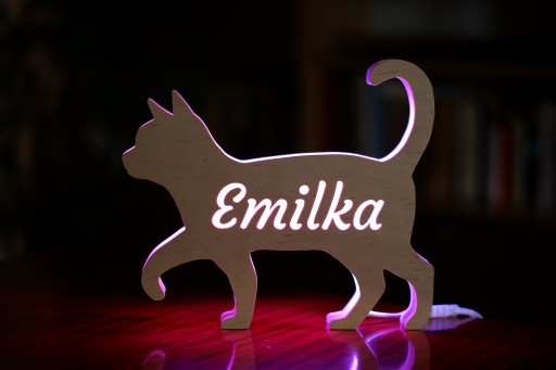 Декоративний світильник у формі котика з будь-яким ім'ям - підставка для дитячої кімнати. Ідеальний подарунок до Діда Мороза, Різдва, дня народження, іменин, Дня захисту дітей та інших свят. Він відмінно працює як прикраса не тільки вночі, але і вдень.
