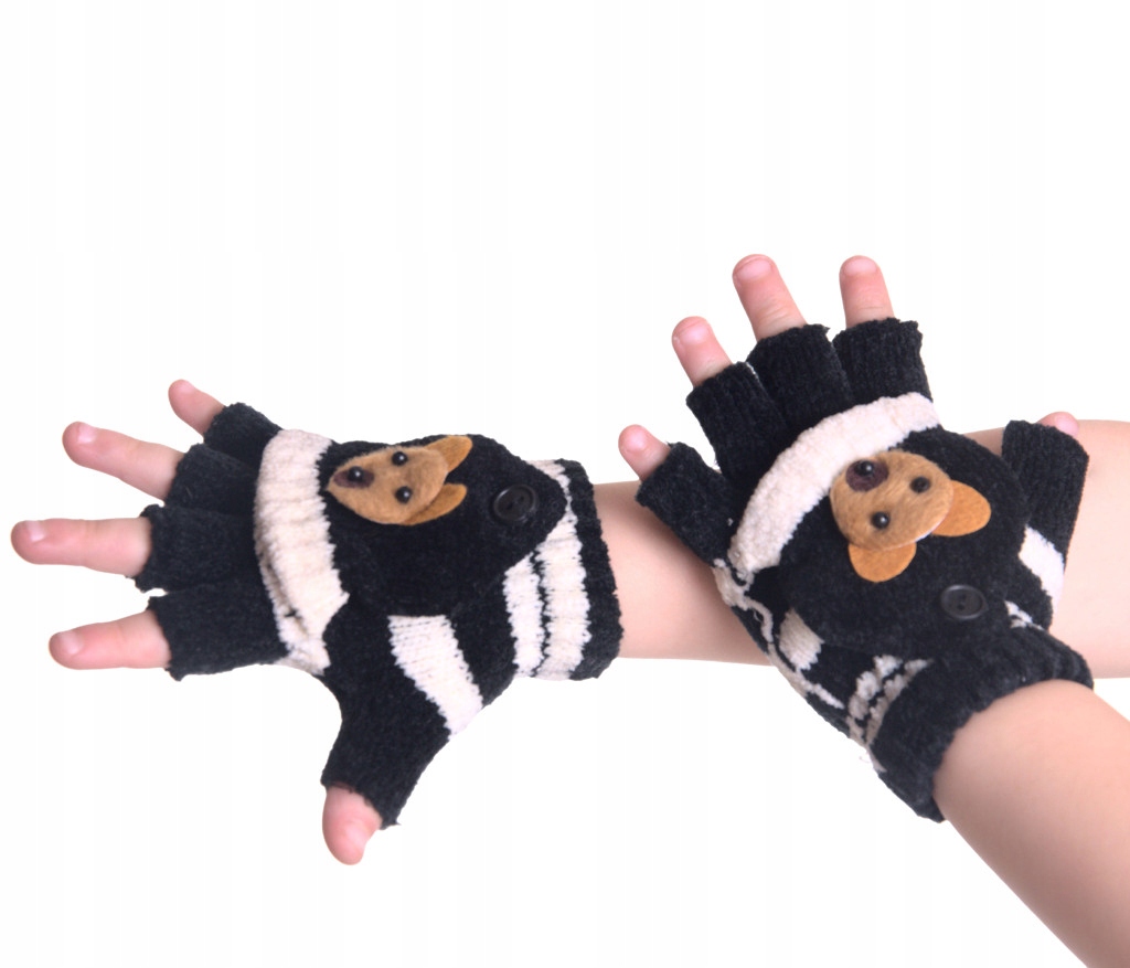 Rękawiczki dziecięce pięciopalczaste mitenki z klapką