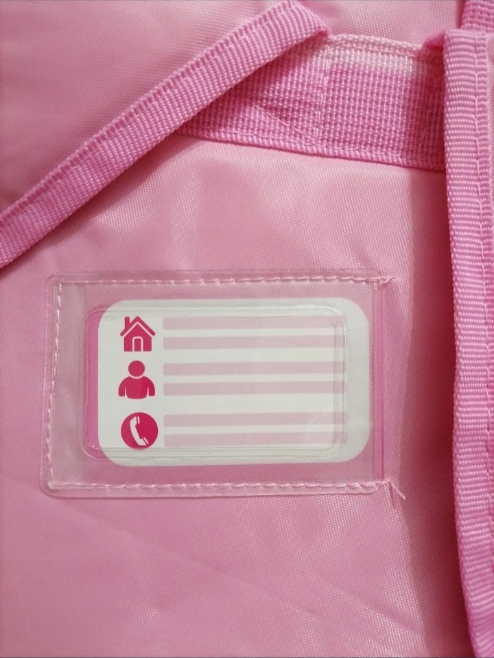 Z tyłu plecaka miejsce na wpisanie kontaktu do rodziców.
