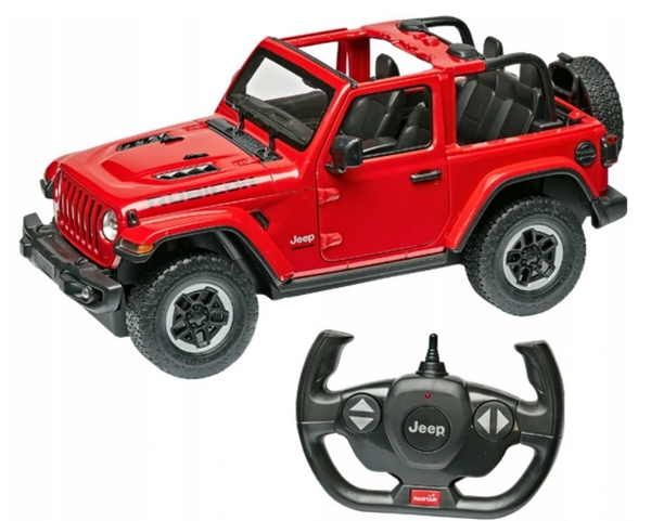 Zdalnie sterowany samochód Jeep Wrangler Rubicon w kolorze czerwonym to autentyczna replika w skali 1:14. Samochód za pomocą pilota porusza się do przodu, do tyłu, skręca oraz hamuje. Pojazd jest kierowany za pomocą pilota działającego radiowo, osiąga prędkość 7 kilometrów na godzinę. Pilot ma zasięg około kilkunastu metrów i w przeciwieństwie od pilotów na podczerwień może być bez żadnych problemów używany na zewnątrz przy pełnym słońcu.