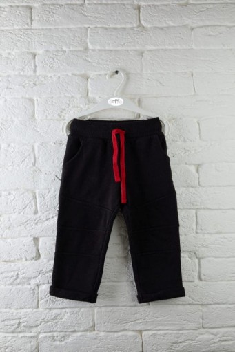 Бавовняні спортивні штани для хлопчика чорного кольору. Червоний шнурок і гумка на талії. Підкатані ніжки, з кишенями. Неізольований. Ідеальний варіант для весни!
