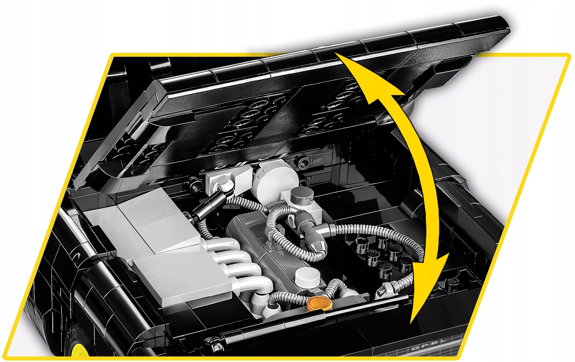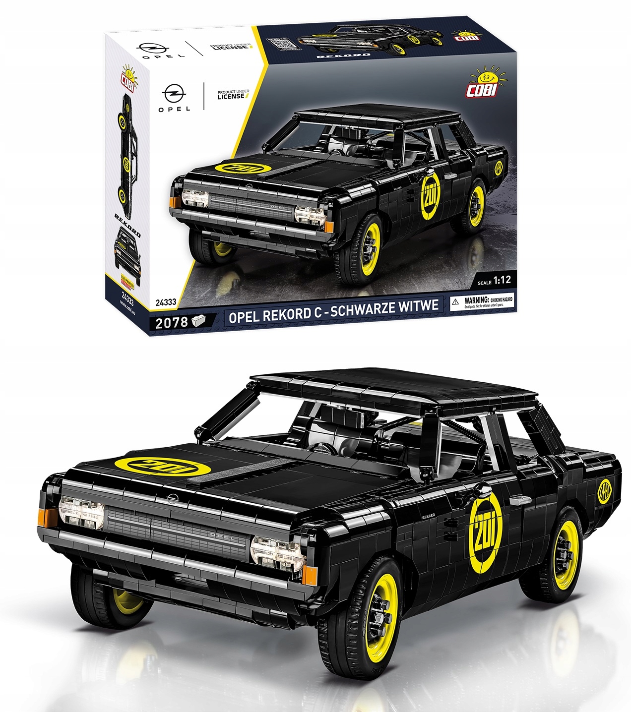 Legendarna Czarna Wdowa w zupełnie nowej serii motoryzacyjnej od COBI! Zaawansowany technicznie klockowy zestaw w dużej modelarskiej skali 1:12 ma aż 38 cm długości. Samochód Opel Rekord C w wersji sportowej wydany na oryginalnej licencji marki Opel. Zestaw został zaprojektowany z 2300 elementów. Model wyróżnia się zastosowaniem dużej ilości, wyłącznie wysokiej jakości nadruków! Całkowicie zrezygnowaliśmy z naklejek. Specjalnie na potrzeby tak dużych zestawów zaprojektowano nowe elementy, zapewniające dodatkowe funkcjonalności. Ruchoma kierownica, którą możemy skręcać koła, zawiasy do otwieranych drzwi, elementy karoserii i wykończenia. Pod uchylną maską znajduje się odwzorowany z klocków silnik. Liczne detale takie jak klamki, światła, zegary tworzą spójną całość z doskonale odwzorowaną charakterystyczną bryłą tego pojazdu. Na karoserii nadrukowany jest numer startowy 201.Model jest idealny dla kolekcjonerów oraz miłośników klasycznej motoryzacji. Czytelna i intuicyjna instrukcja prowadząca przez kolejne kroki oraz klocki zapakowane w numerowane woreczki sprawiają, że proces budowy przebiega sprawnie i satysfakcjonująco.Opel to niemiecki producent samochodów osobowych, sportowych i dostawczych, który za sprawą wielu udanych modeli na trwałe zapisał się w historii motoryzacji. Przełomowym samochodem, dla Opla, który w segmencie klasy średniej po raz pierwszy przekroczył milion wyprodukowanych egzemplarzy, był właśnie REKORD. Najsłynniejszy Opel Rekord "Schwarze Witwe" powstał w tajemnicy! Jako część koncernu General Motors, Opel miał zakaz działalności wyścigowej. Mimo to pracownicy fabryki przygotowali sportową wersję Rekorda ze 180 konnym silnikiem. Dzięki żółtym aplikacjom na czarnym lakierze nazywano go "Wyścigową Taksówką" i "Czarną Wdową". Samochód stał się sensacją i brał udział w spektakularnych wyścigach. Na skutek zakazów z kierownictwa GM samochód został wywieziony do Austrii, gdzie ślad po nim zaginął. Teraz za sprawą klocków konstrukcyjnych COBI, legenda motoryzacji powraca w wielkim stylu!