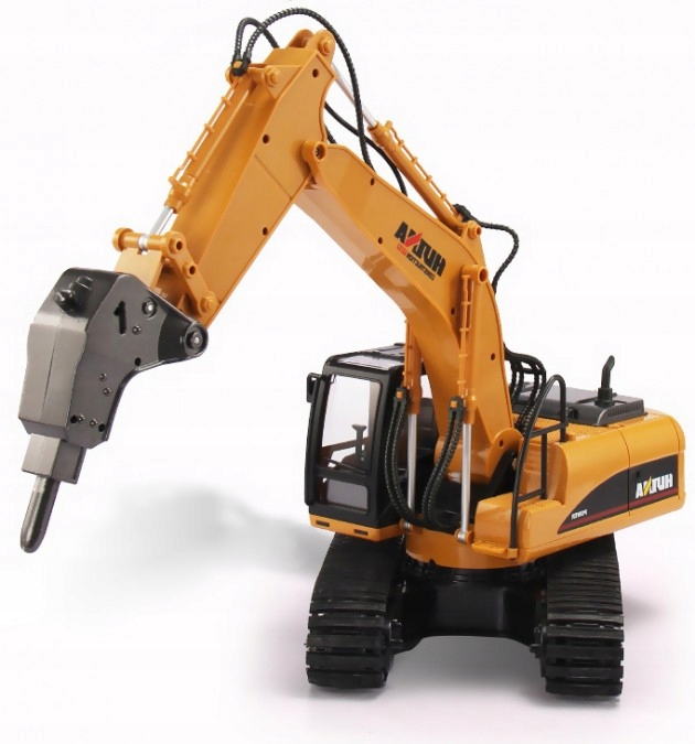 16-kanałowa koparka gąsienicowa z udarowym młotem wyburzającym marki H-Toys to doskonale odwzorowany zdalnie sterowany model wykonana niezwykle precyzyjną metodą die cast. Wyglądem i funkcjonalnością odzwierciedla prawdziwą maszynę budowlaną.