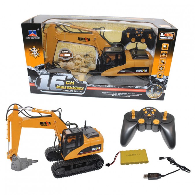 Huina (H-Toys) Koparka gąsienicowa z młotem wyburzeniowym Alloy 1:14 16CH 2.4GHz RTR