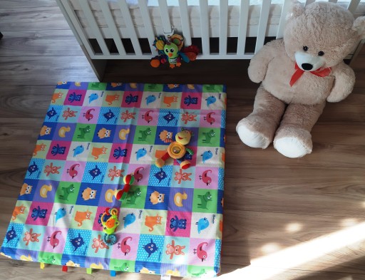Використання матраца/килимка забезпечить дитині безпечне навчання сидіти, повзати та ходити, а в більш пізньому віці — вільні ігри будь-якими іграшками. На одній зі сторін є етикетки, які стимулюють психомоторний розвиток малюків і стимулюють почуття, і малюки люблять ними гратися!