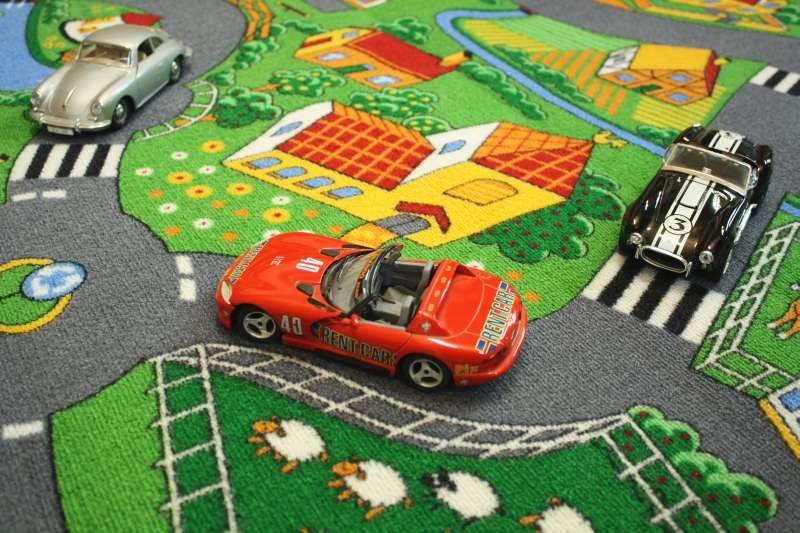 Wspaniała wykładzina do zabawy samochodami dla chłopców.