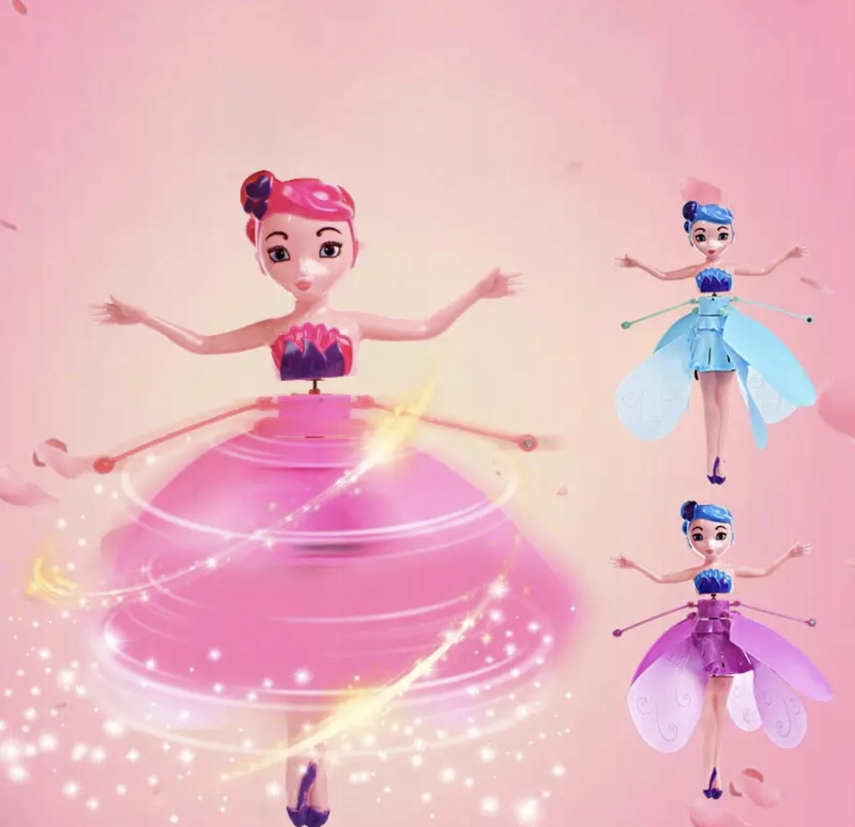 Magiczna lalka, która sama lata i świeci! Za pomocą czujnika który posiada wróżka, można lalkę sterować dłonią . Wystarczy uruchomić wróżkę za pomocą przycisku znajdującego się na sukience lalki. Gdy sukieneczka zacznie się obracać wróżka gotowa jest do latania . Puszczamy lalkę w górę i nad jej nogami sterujemy dłonią gdzie ma lecieć. W trakcie latania wróżki jej sukienka miga kolorowymi światełkami uatrakcyjniając w ten sposób zabawę. Zabawką można bawić się w domu jak i w ogrodzie.
