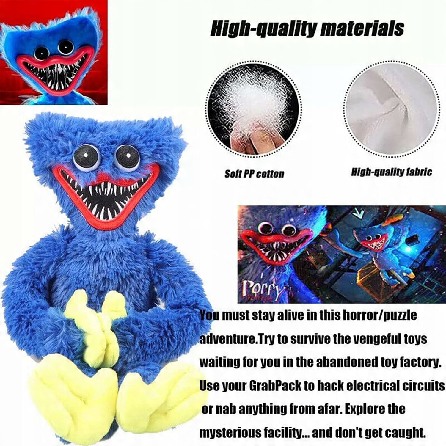 【Huggy Wuggy Poppy Playtime】 Poppy playtime Huggy Wuggy Toy, ten nowy produkt inspirowany jest grą symulacyjną z prawdziwego wyzwania w sekretnym pokoju, te niebieskie potwory, które nagle pojawiają się, zawsze mogą zaskoczyć ludzi. Długie kończyny i okropna głowa. Boisz się ich?