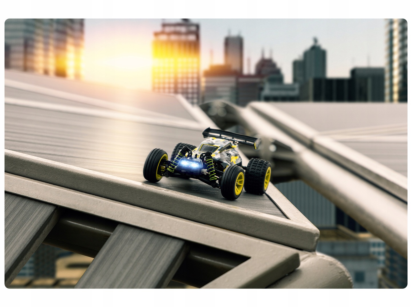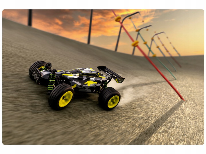 Duża konstrukcja w skali 1:18 z oszałamiającą prędkością i znakomitą zwrotnością sprawiają, że ciężko zrównać się X-blast! Ten wyjątkowy samochód RC oferuje możliwość wzięcia udziału w spektakularnych rajdach, a dzięki wytrzymałej baterii i dużemu zasięgowi (do 100 m) zapewnia wspaniałą rozrywkę. Znakomity design buggy cara sprawi, że auto wyróżni się na każdym wyścigowym torze.