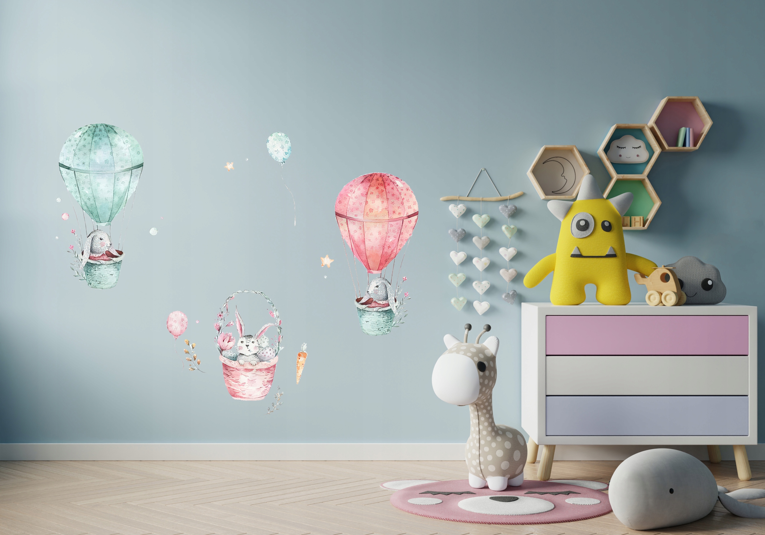 Zestaw naklejek ściennych - Króliczki, balony