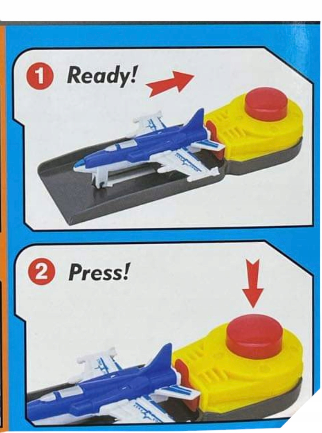 Zestaw 3 samolotów wraz z wyrzutnią działającej na zasadzie zgodnej jak na zdjęciu, doskonała zabawka dla dzieci, możliwość kreatywnego ustawiania celów w które ma trafić wystrzelony samolot itp.