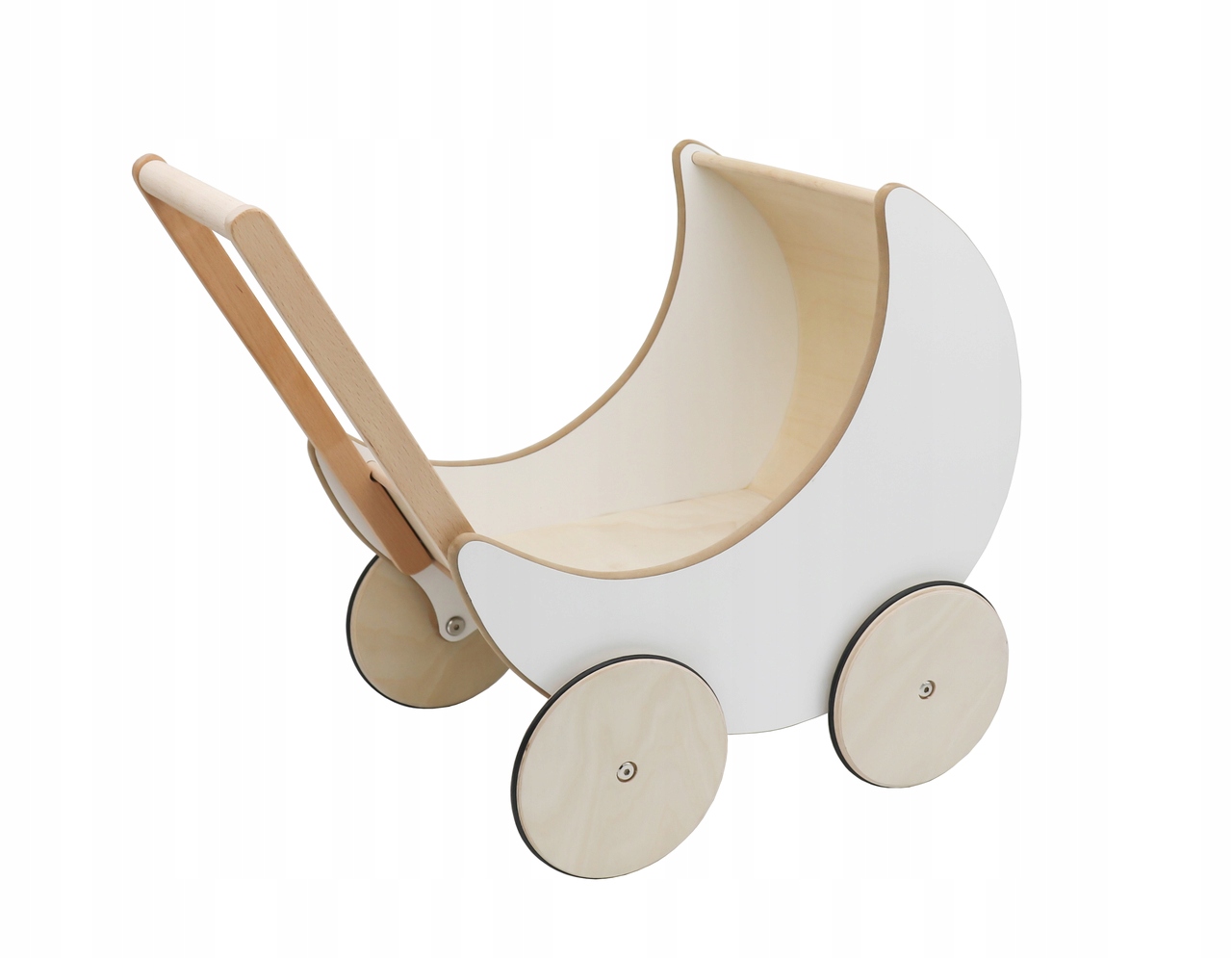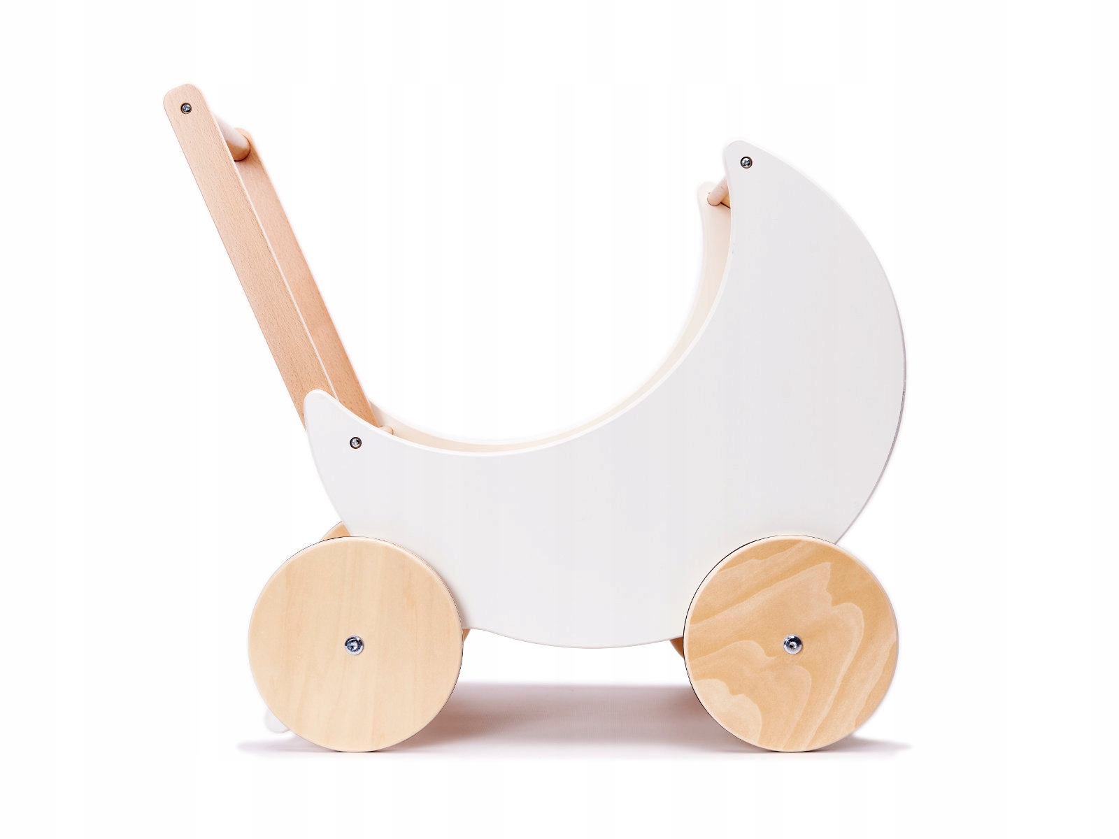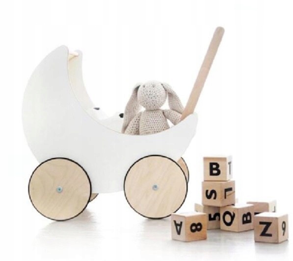 Wózek dla lalek spacerówka gondola drewniany pchacz biały