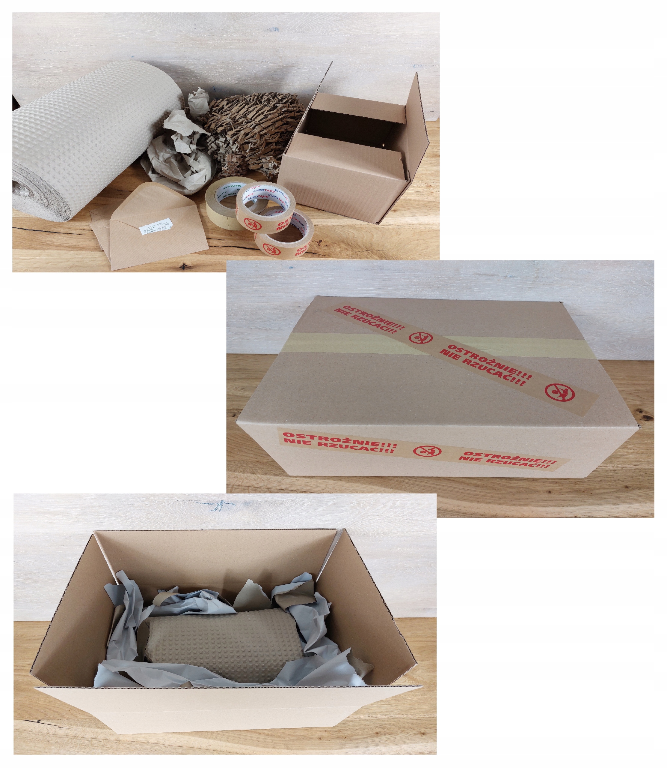 EKOLOGICZNE PAKOWANIE z zastosowaniem: kartonów, papierowej taśmy, papieru bąbelkowego oraz wypełniacza papierowego!