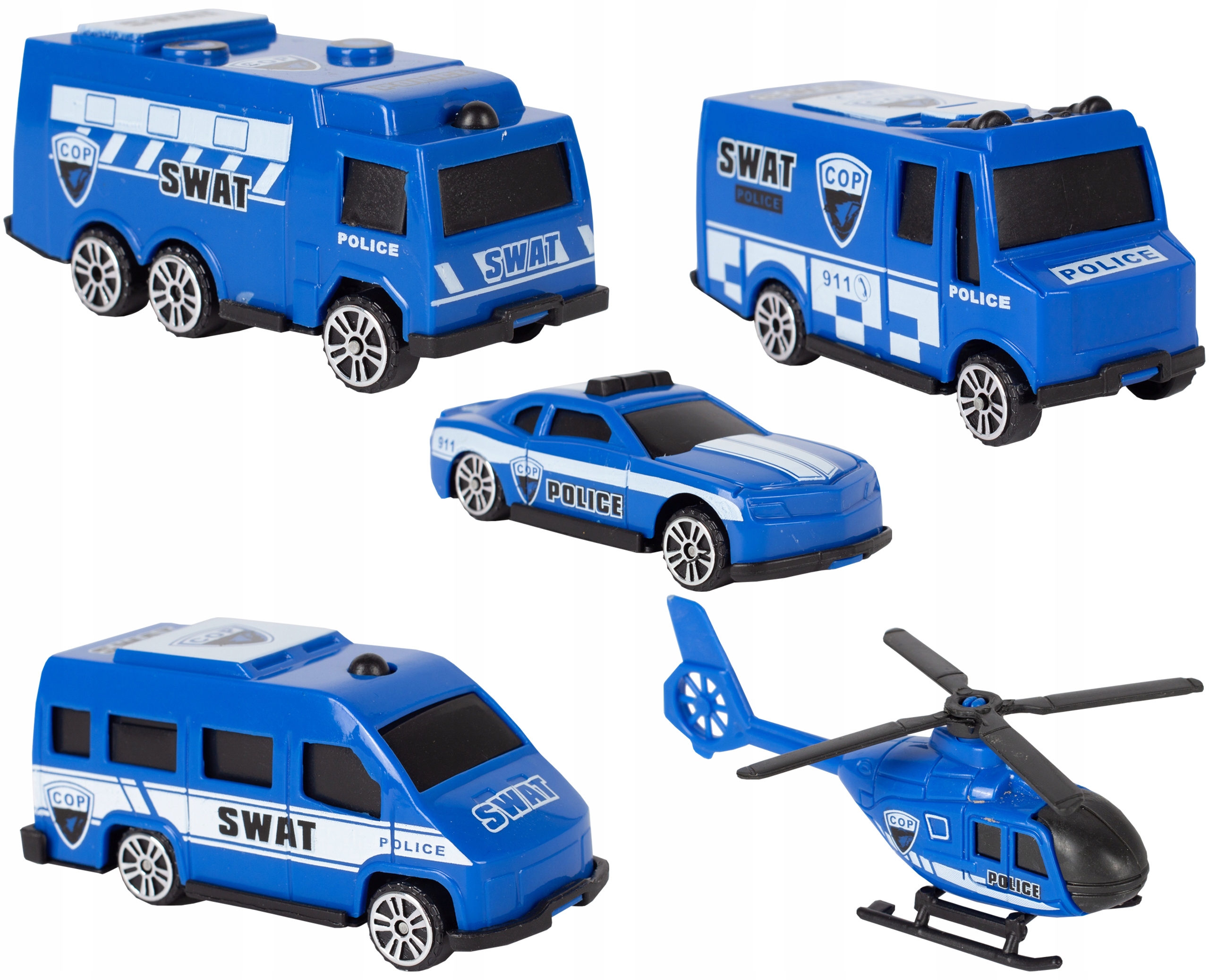 pojazd policyjny: 7 (dł.) cmPosterunek policji: wysokość 10,5 , podstawa 10 x 8 cm