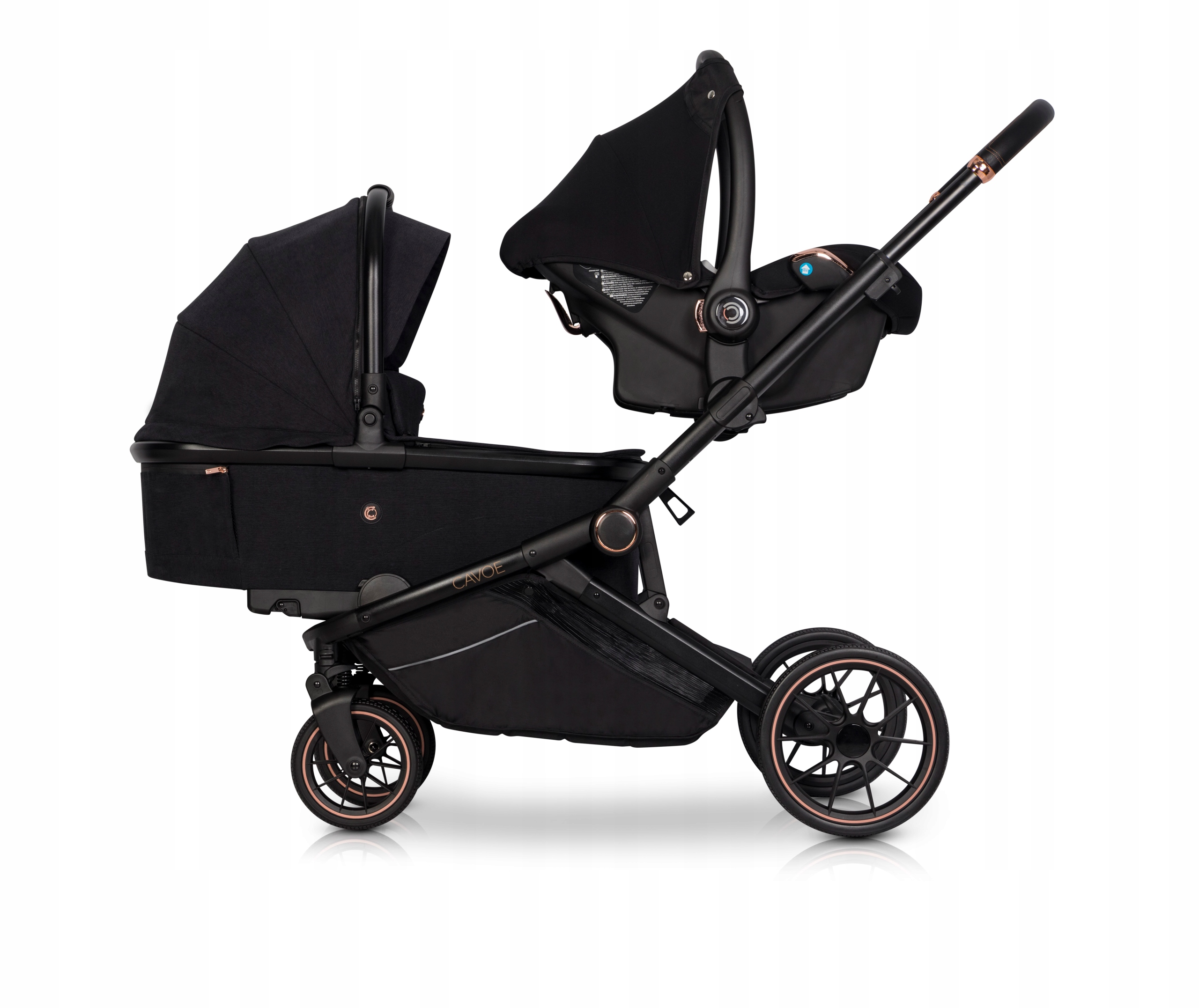 AVEC marki CAVOE jest wózkiem dla dwójki dzieci typu tandem. Oferowany jest jako wózek spacerowy z dwoma pełnowymiarowymi siedziskami z możliwością dokupienia jednej lub dwóch pełnowymiarowych gondoli. Dodatkowo marka CAVOE oferuje możliwość dokupienia uniwersalnych adapterów, za pomocą, których możesz wpiąć jeden lub dwa foteliki samochodowe CAVOE 0+ Isofix Ready lub wybrane foteliki innych znanych światowych marek w tym Maxi Cosi, Cybex i Avionaut.