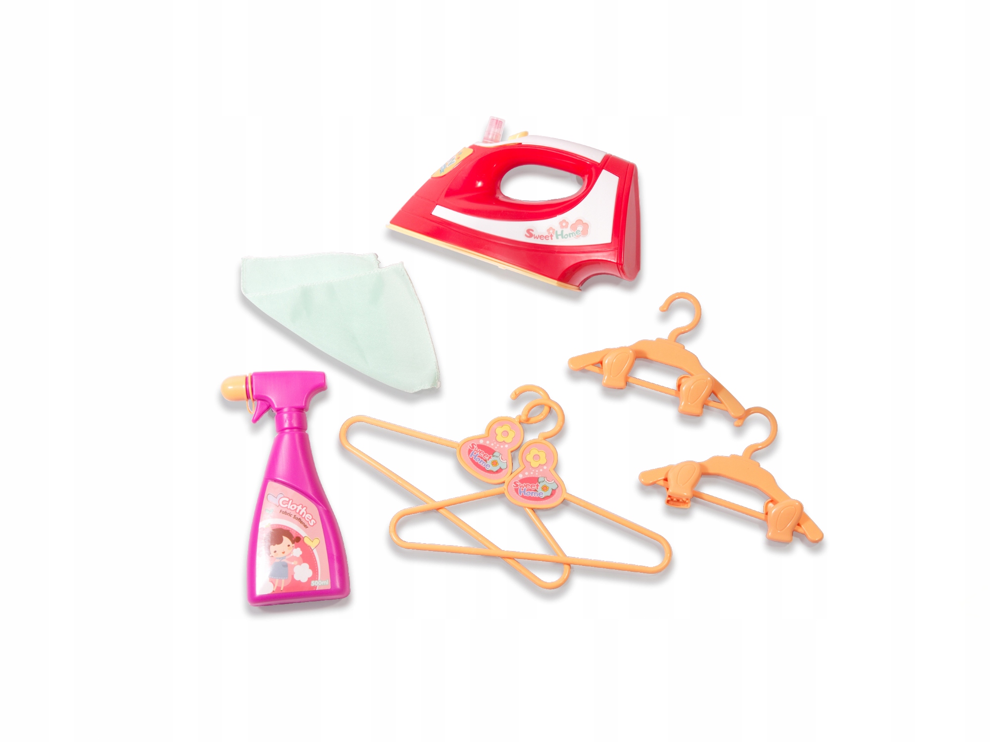 Zestaw pozwoli dziecku nauczyć się prawidłowych czynności związanych z dbaniem o ubrania: rozwieszaniem prania, prasowaniem i wieszaniem ubranek na wieszaki.